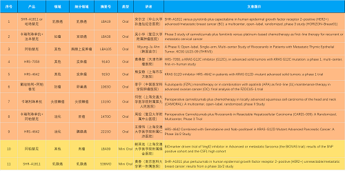 15款创新药包括10款已上市产品:注射用瑞康曲妥珠单抗(艾维达®,研发代号:SHR-A1811)、注射用卡瑞利珠单抗(艾瑞卡®)、苹果酸法米替尼胶囊(艾比特®)、甲磺酸阿帕替尼片(艾坦®)、马来酸吡咯替尼片(艾瑞妮®)、阿得贝利单抗注射液(艾瑞利®)、羟乙磺酸达尔西利片(艾瑞康®)、氟唑帕利胶囊(艾瑞颐®)、瑞维鲁胺片(艾瑞恩®)、海曲泊帕乙醇胺片(恒曲®),以及5款未上市产品,包括KRASG12C抑制剂HRS-7058、KRASG12D抑制剂HRS-4642、选择性的AR-PROTAC(雄激素受体-蛋白降解靶向嵌合体)小分子HRS-5041、抗PD-L1/TGF-βRII双抗瑞拉芙普-α注射液(SHR-1701)、Trop-2 ADC SHR-A1921。2类新药盐酸伊立替康脂质体注射液(II)(越优力®)及国内首仿药昂丹司琼口溶膜(艾其速®)各有1项研究入选。本文特对研究成果做了梳理,带领各位读者领略利来医药创新之光。