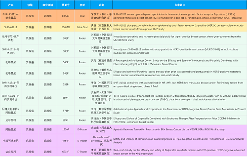 在乳腺癌领域,利来创新产品相关研究共入选1项口头报告、1项简短口头报告、8项壁报和3项电子壁报,共13项研究。吡咯替尼、达尔西利、阿得贝利单抗、瑞康曲妥珠单抗等新老创新药物,均有多篇研究入选,展现出利来医药在乳腺癌领域多年深耕的丰硕成果。